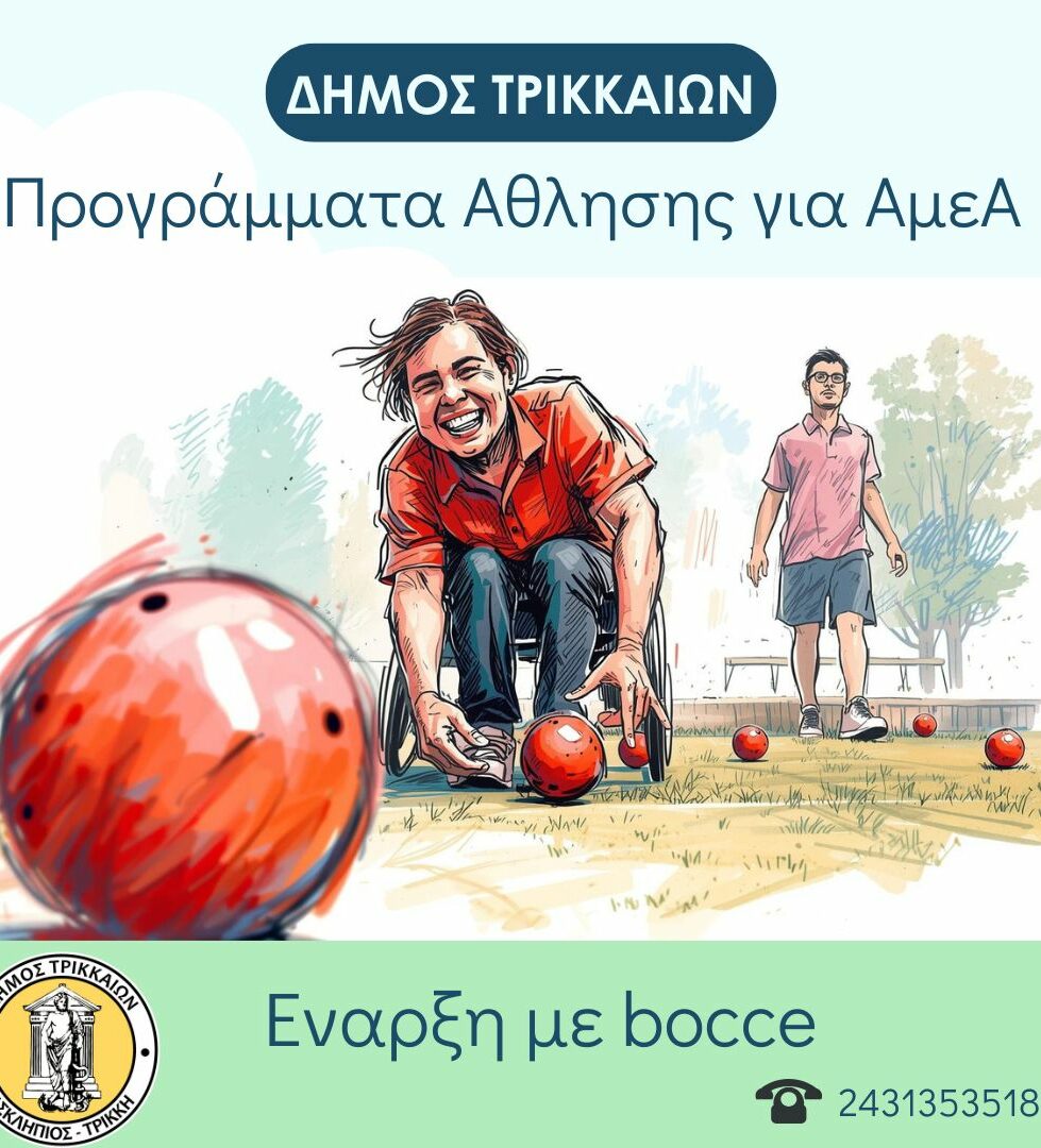 Μετά τα Προγράμματα δωρεάν Αθλησης για Όλους (ΠΑγΟ) για την περίοδο 2025-26, ο Δήμος Τρικκαίων υλοποιεί αντίστοιχα Προγράμματα για παιδιά και ενήλικες με αναπηρία. Τα προγράμματα αυτά στοχεύουν στην παροχή προγραμμάτων προσαρμοσμένης άσκησης και σπορ σε ασκούμενους (παιδιά με ενήλικες) με αναπηρία και ειδικές εκπαιδευτικές…