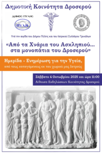 Ο Δήμος Πύλης σε συνεργασία με την Δημοτική Κοινότητα Δροσερού διοργανώνουν Ημερίδα για την Υγεία, από τους καταγόμενους από την Κοινότητα Δροσερού Ιατρούς.