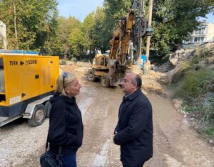 Τη μεγάλη πρόοδο εργασιών στην υπό κατασκευή νέα γέφυρα Μαρούγγαινας διαπίστωσε ο Δήμαρχος Τρικκαίων Νίκος Σακκάς. το πρωί της Δευτέρας 13 Οκτωβρίου 2025 ο κ. Σακκάς επισκέφθηκε το εργοτάξιο, όπου συνομίλησε με τη μηχανικό κ. Αθηνά Μαράβα και εργαζόμενους. Ενημερώθηκε για το πώς προχωρά η διάτρηση πασσάλων, όπως ονομάζεται η διαδικασία έμπηξης των πασσάλων, καθώς και για τις σχετικές εργασίες που ακολουθούν.