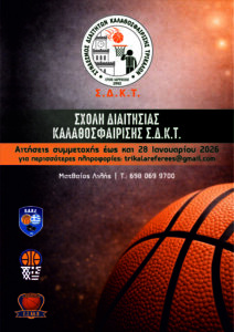 Ο Σύνδεσμος Διαιτητών Καλαθοσφαίρισης Τρικάλων ανακοινώνει τη δημιουργία νέας Σχολής Διαιτητών Καλαθοσφαίρισης, η οποία πρόκειται να ξεκινήσει το προσεχές διάστημα, με στόχο την εκπαίδευση και ανάδειξη νέων διαιτητών.