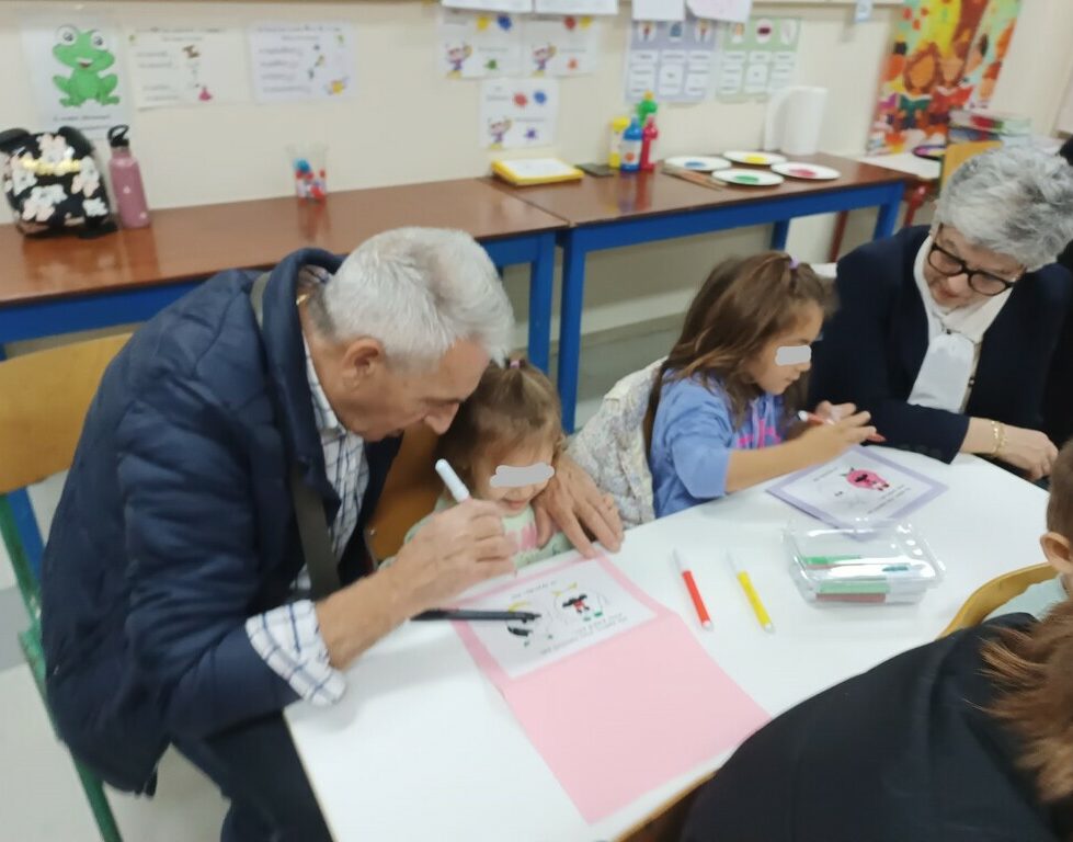 Παππούδες και γιαγιάδες συγκεντρώθηκαν μαζί με τα εγγόνια τους στον χώρο του ΚΔΑΠ και συμμετείχαν όλοι μαζί σε μια σειρά από δημιουργικές και ψυχαγωγικές δραστηριότητες, με την καθοδήγηση των εκπαιδευτικών τους. Τα παιδιά μαζί με τους αγαπημένους τους παππούδες και γιαγιάδες δημιούργησαν αναμνηστικές κάρτες, τις οποίες ζωγράφισαν από κοινού, αποτυπώνοντας επάνω την παλάμη τους – ένα όμορφο σύμβολο σύνδεσης και αγάπης ανάμεσα στις δύο γενιές.