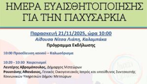 Η εκδήλωση θα πραγματοποιηθεί την Παρασκευή 21 Νοεμβρίου 2025 και ώρα 10:00, στην Αίθουσα Νίτσα Λιάπη, Καλαμπάκα.