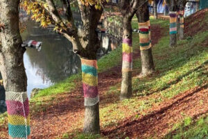 Τα πλεκτά έργα δημιουργήθηκαν στο πλαίσιο δημιουργικής δράσης με τη συμμετοχή παιδιών, τα οποία με ενθουσιασμό, φαντασία και συνεργασία έπλεξαν κομμάτια γεμάτα χρώμα και συναίσθημα. Στη συνέχεια, τα έργα τοποθετήθηκαν στους κορμούς των δέντρων, προσφέροντας μία εικόνα χαράς και ζεστασιάς σε όσους περνούν από το σημείο.