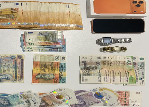 • τα χρηματικά ποσά των -9.435- ευρώ, -3.150- ρουβλιών Ρωσίας, -865- λιρών Αγγλίας, -500- δολαρίων Η.Π.Α., -30- δολαρίων Αυστραλίας και -15- δολαρίων Καναδά.