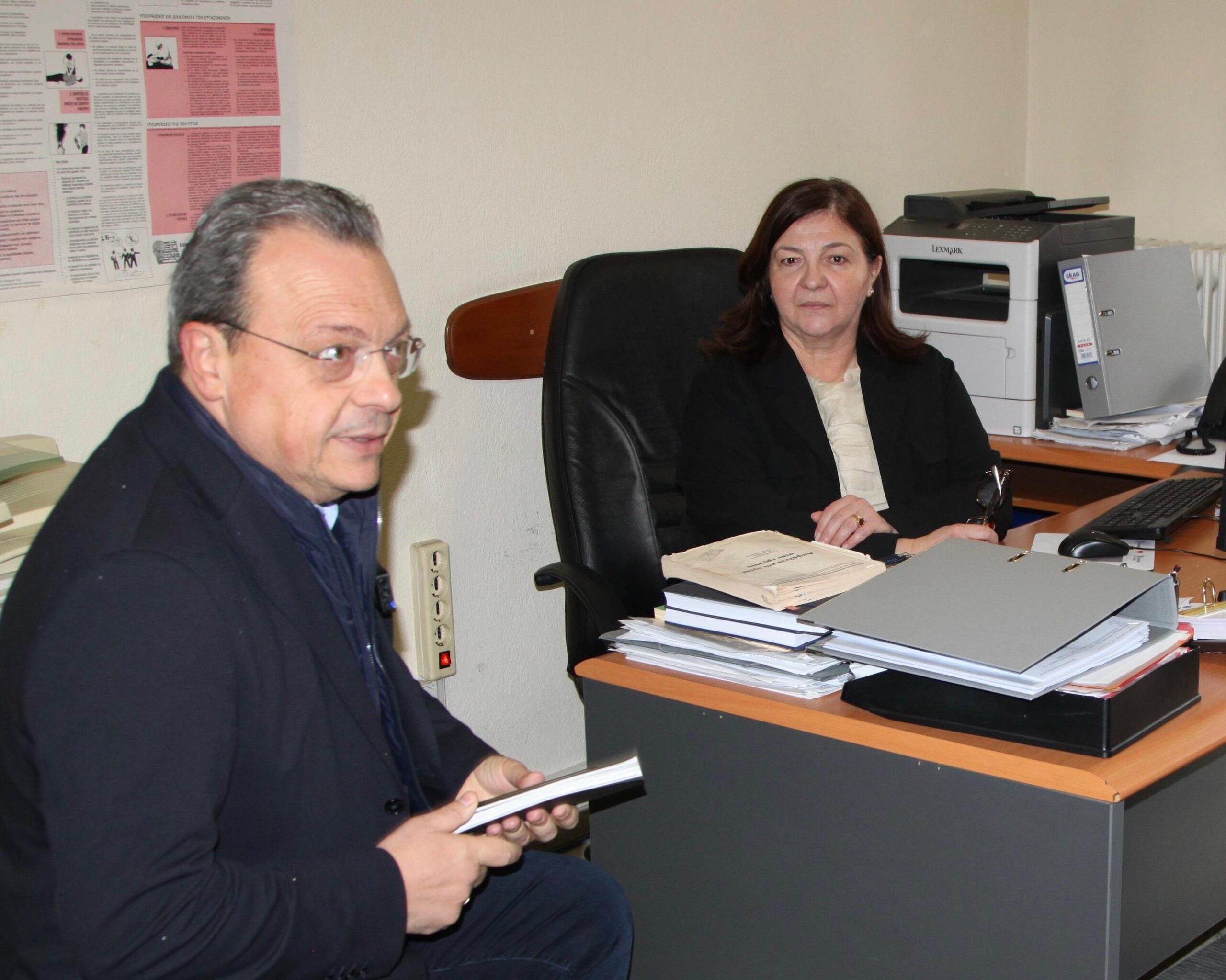 Στη συνέχεια, επισκέφθηκε και το Τμήμα Επιθεώρησης Ασφάλειας και Υγείας της Εργασίας, όπου συναντήθηκε με την προϊσταμένη κα Διαμαντή και με επιθεωρητές.