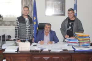 Στο γραφείο του υπέγραψε ο Δήμαρχος Πύλης Κωνσταντίνος Μαράβας τη σύμβαση για την υλοποίηση του έργου «Ανακατασκευή πεζοδρομίων Δ.Κ. Φήκης» συνολικού προϋπολογισμού 260.000 ευρώ.