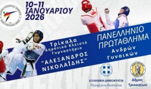 Με την είσοδο του 2026 ο Δήμος Τρικκαίων υποδέχεται μια ακόμη πανελλήνια αθλητική διοργάνωση. Πρόκειται για το Πανελλήνιο Πρωτάθλημα Τάε Κβο Ντο Ανδρών – Γυναικών «Αλέξανδρος Νικολαΐδης» που θα διεξαχθεί το διήμερο 10 και 11 Ιανουαρίου 2026 στο Δημοτικό Κλειστό Γυμναστήριο Τρικάλων (έναντι 2ου Λυκείου).