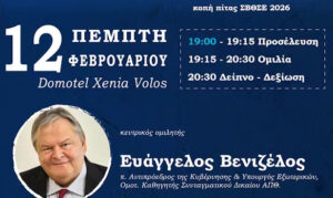 Η εκδήλωση θα πραγματοποιηθεί, την Πέμπτη 12 Φεβρουαρίου 2026 και ώρα 19:00, στο Domotel Xenia Βόλου.