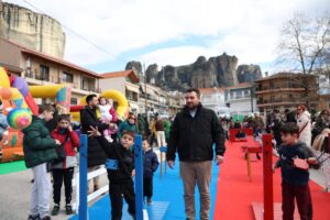 Με πολύ μεγάλη συμμετοχή και εντυπωσιακή προσέλευση μικρών και μεγάλων πραγματοποιήθηκε η αποκριάτικη εκδήλωση του Δήμου Μετεώρων στην Πλατεία «Λιάπη», στην Καλαμπάκα, μετατρέποντας το κέντρο της πόλης σε ένα ζωντανό, παραμυθένιο ΜΕΤΕΩΡΟδάσος. Εκατοντάδες δημότες και επισκέπτες αγκάλιασαν τη μεγάλη γιορτή, γεμίζοντας τον χώρο με χαμόγελα, παιδικές φωνές και αποκριάτικα χρώματα. Τα θεματικά παιχνίδια, τα διαδραστικά εργαστήρια και οι δράσεις κράτησαν αμείωτο το ενδιαφέρον των παιδιών, δημιουργώντας μια ατμόσφαιρα χαράς και ενθουσιασμού που πλημμύρισε όλη την πόλη.