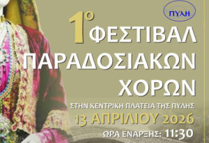Ο Δήμος Πύλης ανακοινώνει με ιδιαίτερη χαρά και προσμονή τη διοργάνωση του 1ου Φεστιβάλ Παραδοσιακών Χορών «Στα βήματα της Άνοιξης», το οποίο θα πραγματοποιηθεί στην Κεντρική Πλατεία της Πύλης, τη δεύτερη ημέρα του Πάσχα, στις 11:30 το πρωί.