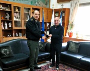 Τον Δήμαρχο Τρικκαίων Νίκο Σακκά επισκέφθηκε ο νέος Διοικητής της ΣΜΥ, Ταξίαρχος Κωνσταντίνος Κωτάκος, με την ευκαιρία της ανάληψης των καθηκόντων του. Ο κ. Σακκάς καλωσόρισε στα Τρίκαλα τον νέο διοικητή της Σχολής, αναφερόμενος στη χρόνια, αγαστή συνεργασία Δήμου και ΣΜΥ, προς όφελος της κοινωνίας των Τρικάλων και των σπουδαστών/τριών. Επίσης, έγινε συζήτηση για τρέχοντα θέματα. Στο τέλος της επίσκεψης αντηλλάγησαν δώρα.
