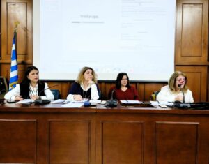 Οι κ. Φωτεινή Κρύου (προϊσταμένη τμήματος Προμηθειών) και Παναγιώτα Ευθυμίου (προϊσταμένη  στο Αυτοτελές Τμήμα Εσωτερικού Ελέγχου) και Μαρία Μουργελά (τμήμα προμηθειών) εξήγησαν συγκεκριμένες διαδικασίες και απάντησαν σε ρωτήσεις που τέθηκαν από στελέχη της Δ/νσης Κοινωνικής Μέριμνας με επικεφαλής τη διευθύντρια κ. Στ. Πελίγκου.