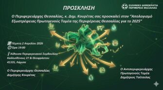 Σε απολογισμό της εξωστρέφειας του Πρωτογενούς Τομέα για το 2025 προχωρά η Περιφέρεια Θεσσαλίας σε ειδική εκδήλωση που θα πραγματοποιηθεί την Πέμπτη 2 Απριλίου και ώρα 19:00 στην αίθουσα του Περιφερειακού Συμβουλίου (Καλλισθένους 27 & Θεοφράστου) στη Λάρισα. Στην εκδήλωση θα μιλήσουν ο Περιφερειάρχης Θεσσαλίας Δημήτρης Κουρέτας, ο Αντιπεριφερειάρχης Πρωτογενούς Τομέα Δημήτρης Τσέτσιλας, οι πρόεδροι …