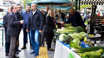 Ο Περιφερειάρχης Θεσσαλίας Δημήτρης Κουρέτας στη λαϊκή αγορά των Τρικάλων