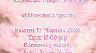 Το Κέντρο Κοινότητας Δήμου Πύλης σε συνεργασία με το Συμβουλευτικό Κέντρο Γυναικών Δήμου Τρικκαίων, με αφορμή την Παγκόσμια Ημέρα Γυναίκας, σας προσκαλούν σε ενημερωτική εκδήλωση, με θέμα: «Η Γυναίκα Σήμερα», την Πέμπτη 19 Μαρτίου 2026, ώρα 17:00 μ.μ., στο Κοινοτικό Κατάστημα του Αγίου Βησσαρίωνα Δ. Πύλης. Η καθοδήγηση και η ενδυνάμωση αποτελούν βασικά θεμέλια για …