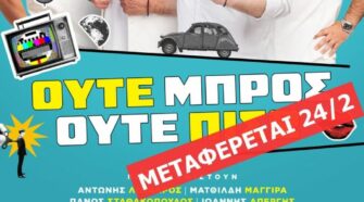Μεταφέρεται για τις 24 Φεβρουαρίου 2026 η προγραμματισμένη για την Τρίτη 27 Ιανουαρίου 2026, θεατρική παράσταση «Ούτε Μπρος Ούτε Πίσω». Όπως τονίζεται σε δελτίο Τύπου του θιάσου της παράστασης «Ούτε Μπρος Ούτε Πίσω» των Μιχάλη Ρέππα και Θανάση Παπαθανασίου, της εταιρείας Μέθεξις και του Χρήστου Τριπόδη, «σε ένδειξη σεβασμού και συμπαράστασης στο βαρύ πένθος της πόλης για …