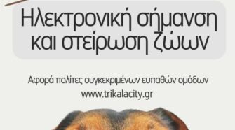 Συνεχίζεται και το 2026 η έμπρακτη στήριξη της φιλοζωίας και των δεσποζόμενων ζώων από τον Δήμο Τρικκαίων. Το πρόγραμμα δωρεάν ηλεκτρονικής σήμανσης και στείρωσης δεσποζόμενων ζώων συντροφιάς και ποιμενικών σκύλων αφορά σε που ανήκουν σε συγκεκριμένες ομάδες (ΑμεΑ, τρίτεκνοι, με ελάχιστο εγγυημένο εισόδημα κ.α.). Βάσει του σχετικού νόμου 4830/2021 το Δημοτικό Συμβούλιο Τρικκαίων ενέκρινε την …