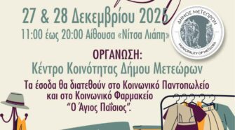Το Κέντρο Κοινότητας Δήμου Μετεώρων διοργανώνει ένα Φιλανθρωπικό Second Hand Clothes Bazaar, το οποίο θα πραγματοποιηθεί τo Σάββατο 27 και την Κυριακή 28 Δεκεμβρίου 2025, από 11:00 το πρωί έως τις 20:00 το βράδυ, στην Αίθουσα «Νίτσα Λιάπη». Στο bazaar θα υπάρχει μεγάλη ποικιλία από προσεγμένα second hand ρούχα, για όλες τις ηλικίες, σε ιδιαίτερα προσιτές τιμές, δίνοντας τη δυνατότητα στους επισκέπτες …